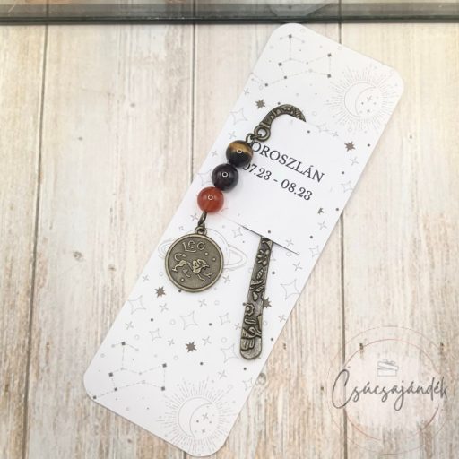Csillagjegyhez tartozó ásványgyöngyökkel díszítve.