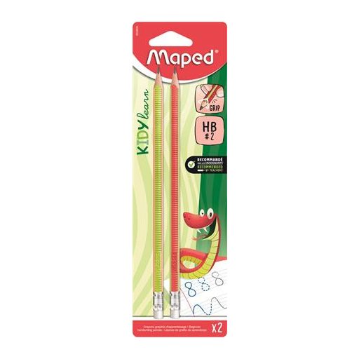 Írástanuló grafitceruza radírral, HB, háromszögletű, MAPED "Kidy Learn", 2 darab