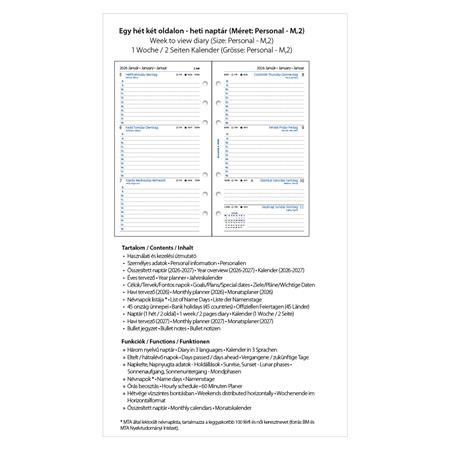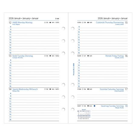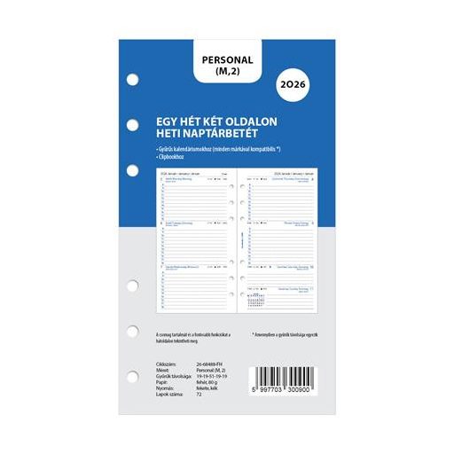 Kalendárium betét, tervező, Filofaxhoz, personal méret, heti, 1 hét/2 oldal, 2026