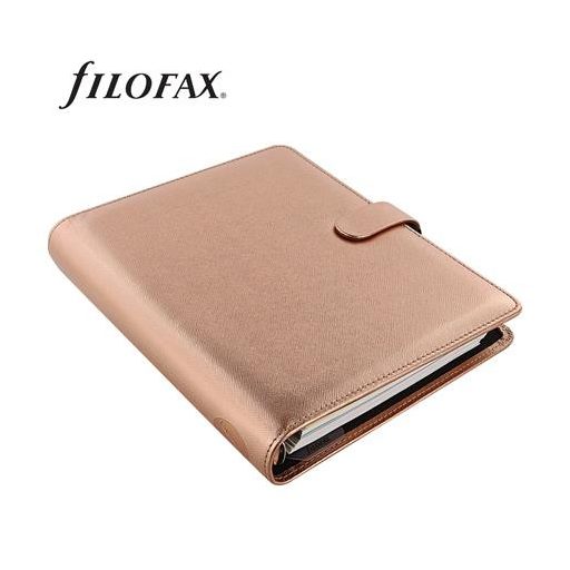 Kalendárium, gyűrűs, betétlapokkal, A5 méret, FILOFAX, "Saffiano Metallic", rózsaarany
