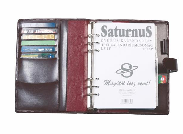 Kalendárium, gyűrűs, betétlapokkal, "L", újrahasznosított bőr, SATURNUS, "418", fekete