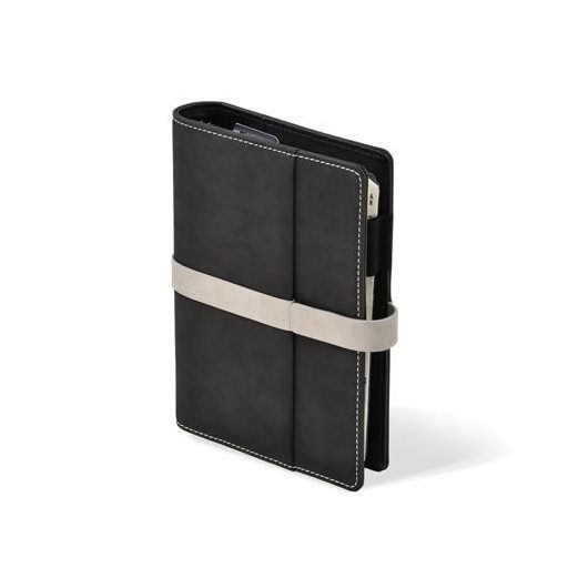 Kalendárium, gyűrűs, betétlapokkal, "M", műbőr, SATURNUS,"225",fekete-szürke