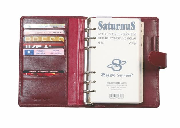 Kalendárium, gyűrűs, betétlapokkal, "S", marhabőr, SATURNUS, "212", barna