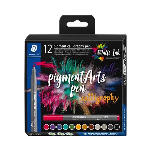 Kalligrafikus filctoll készlet, 2 mm, STAEDTLER "Pigment 375", 12 különböző szín