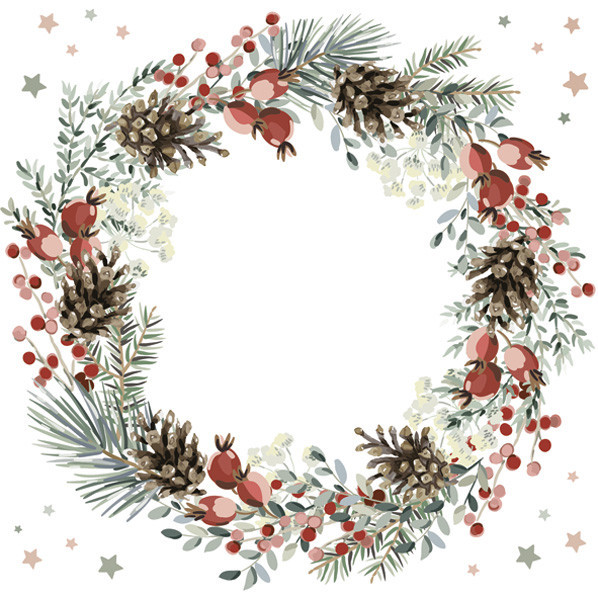Karácsonyi Wreath on White szalvéta 20 db-os 33x33 cm