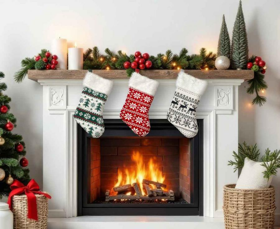 Karácsonyfa Karácsonyi kandalló zokni, csizma
