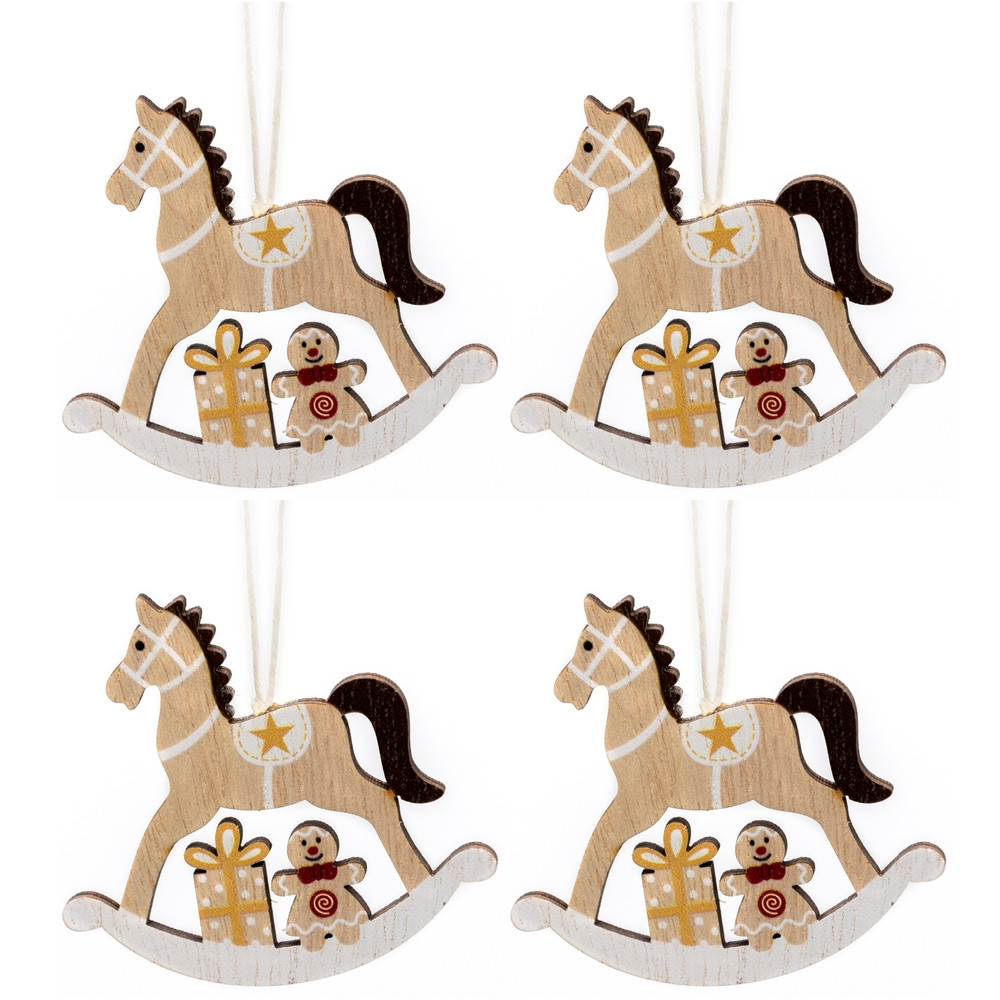 Karácsonyfadísz 4 db-os (natúr-fehér hintaló)