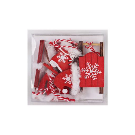 Karácsonyfadísz 6 db-os kicsi (piros-fehér karácsonyi öltözet piros szánkóval)