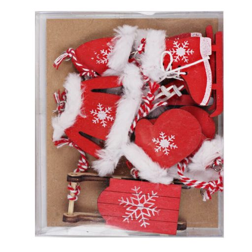 Karácsonyfadísz 6 db-os (piros-fehér karácsonyi öltözet piros szánkóval)