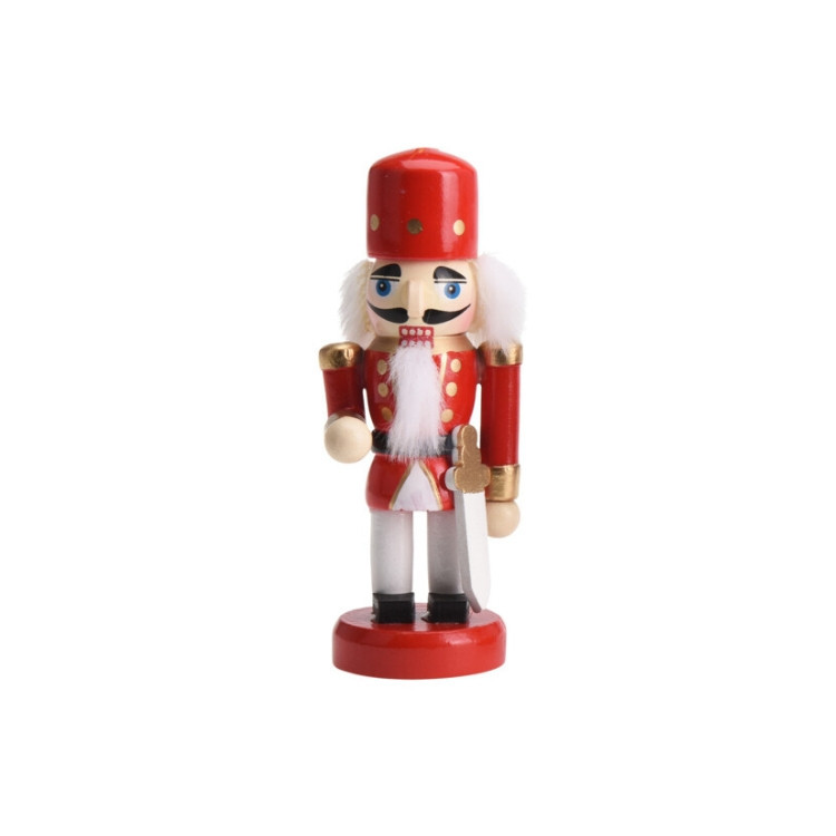 Karácsonyfadísz diótörő - piros ruhában, karddal