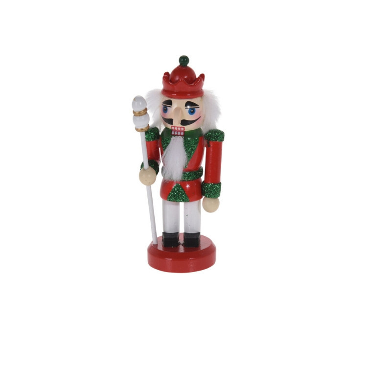 Karácsonyfadísz diótörő - piros-zöld ruhában, jogarral