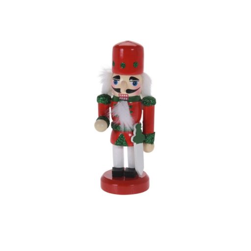 Karácsonyfadísz diótörő - piros-zöld ruhában, karddal