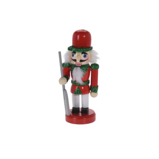 Karácsonyfadísz diótörő - piros-zöld ruhában, puskával