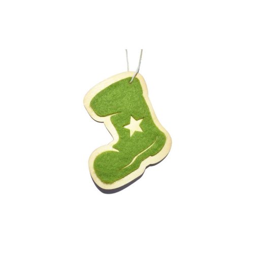 Karácsonyfadísz fából, filc mintával - zöld csizma