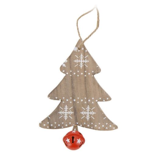 Karácsonyfadísz fából (karacsonyfa piros csengővel)