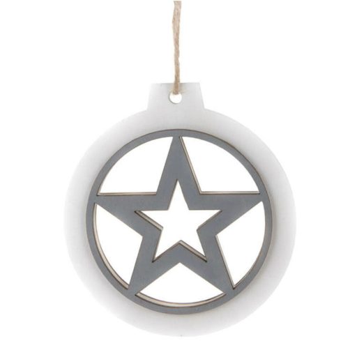 Karácsonyfadísz (fehér karikában csillag, szürke)