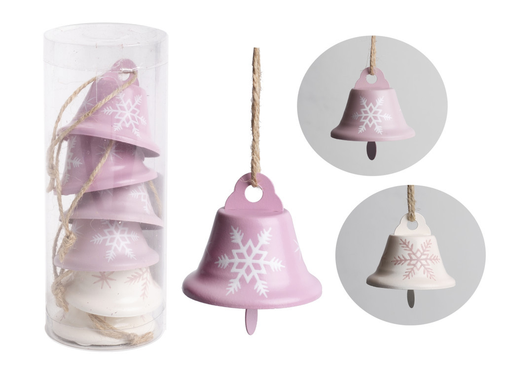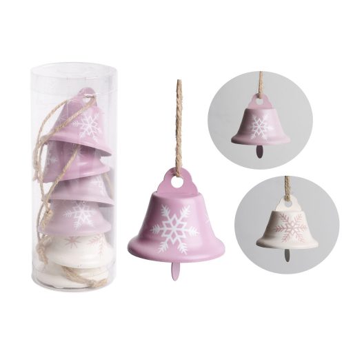 Karácsonyfadísz - fém harangok 6 db-os (rózsaszín)
