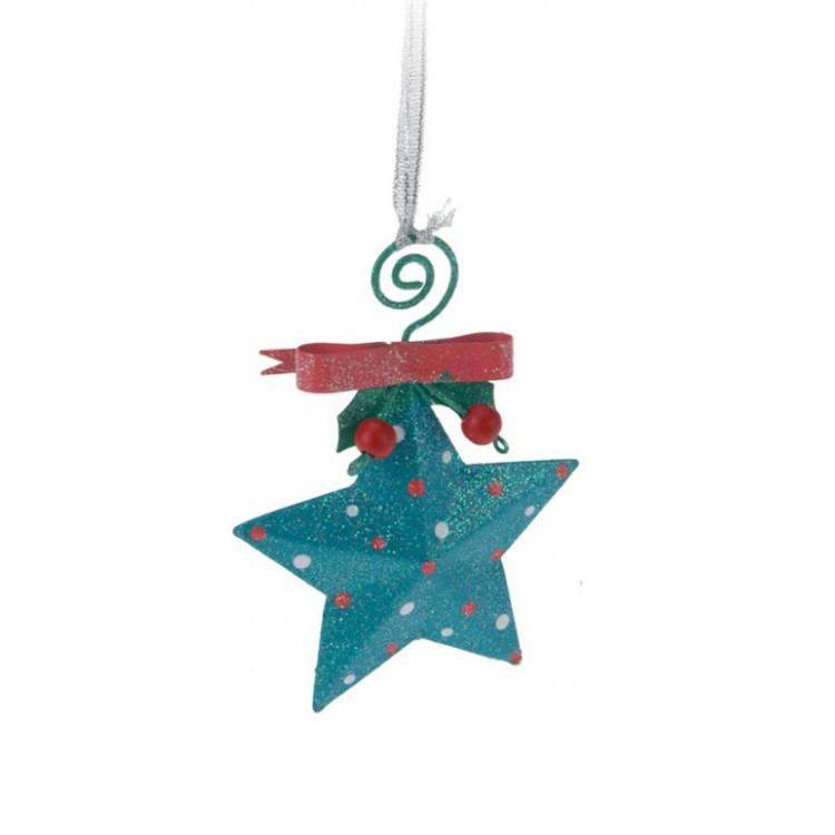 Karácsonyfadísz fémből - 3D kék csillag fagyönggyel