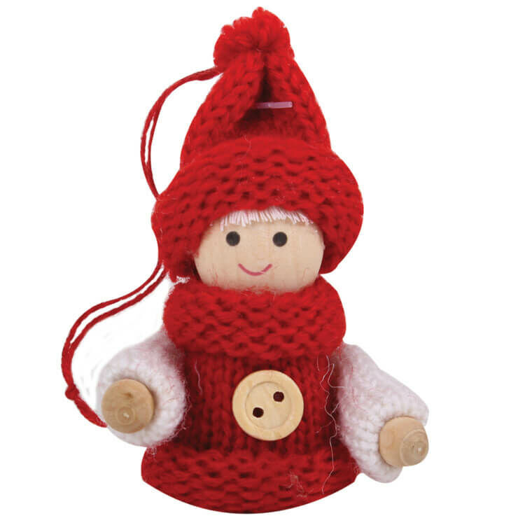 Karácsonyfadísz (kötött, egy gombos, piros fiú)