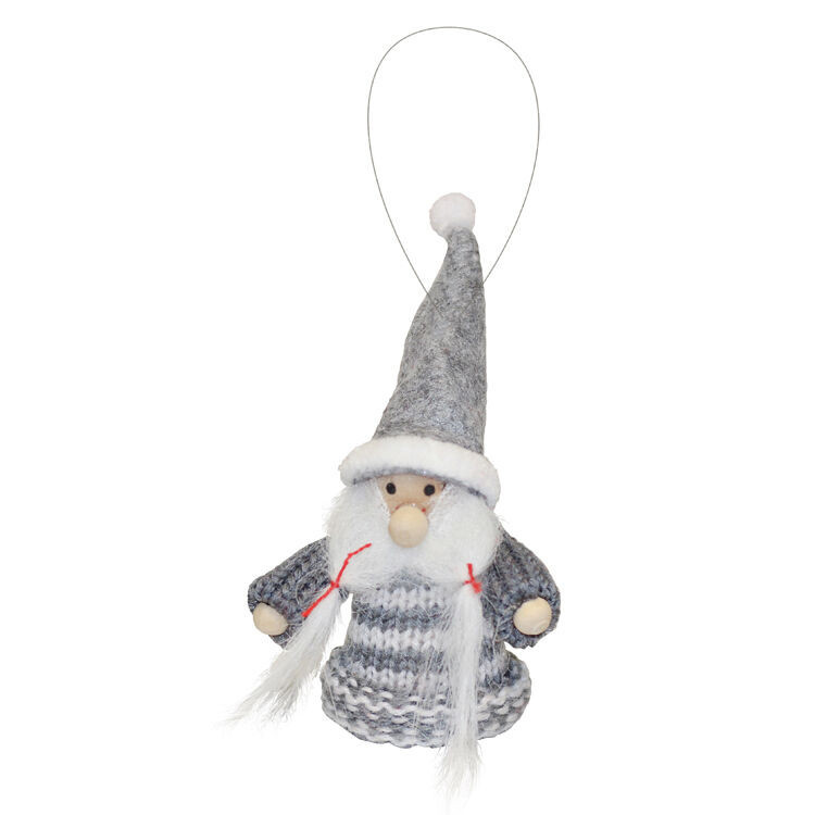 Karácsonyfadísz (manó, kötött szürke ruhában, copfos szakállal)
