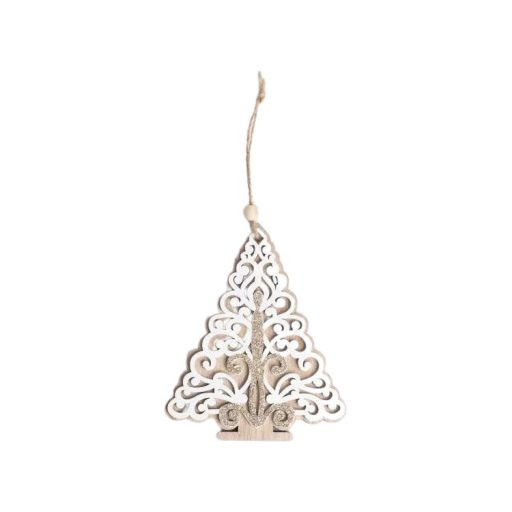 Karácsonyfadísz, natúr- aranyozott, fehér mintával