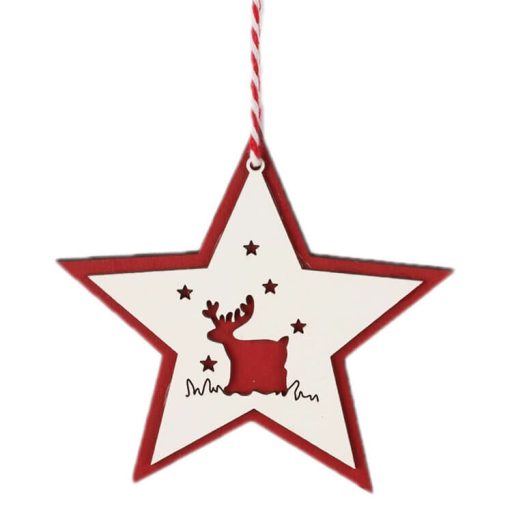 Karácsonyfadísz (piros-fehér csillagban rénszarvas kis csillagokkal)