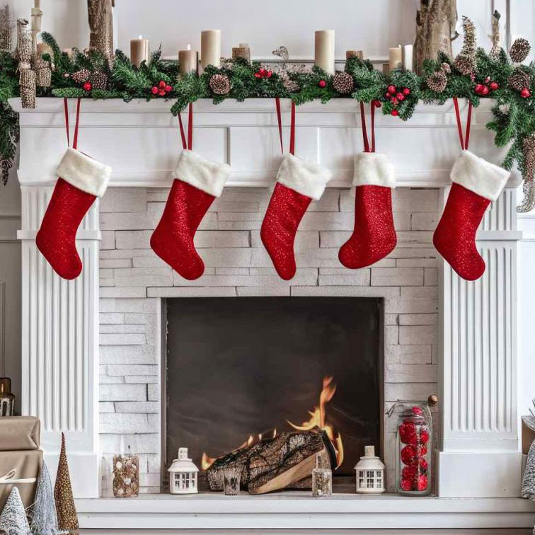 Christmas, Karácsonyi kandalló zokni, csizma flitterekkel