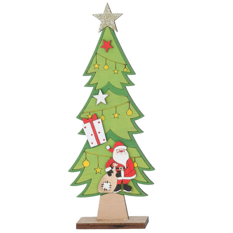 Karácsonyi asztaldísz (zöld karácsonyfa Mikulással)