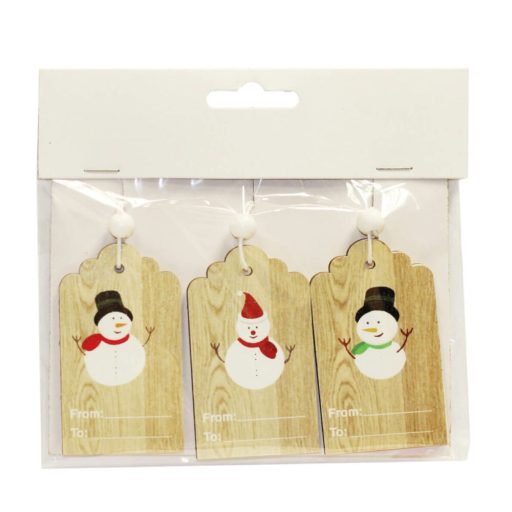 Karácsonyi dekoráció (3db-os, fa üzenő tábla hóemberekkel)