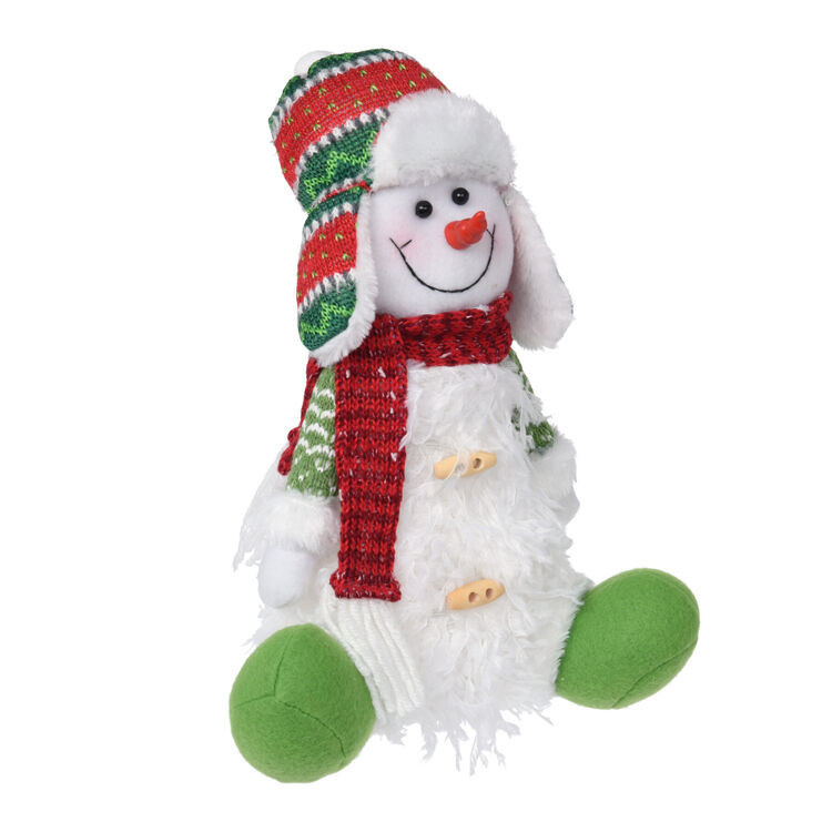 Karácsonyi dekoráció, LED-es (ülő hóember, kötött sapkában)