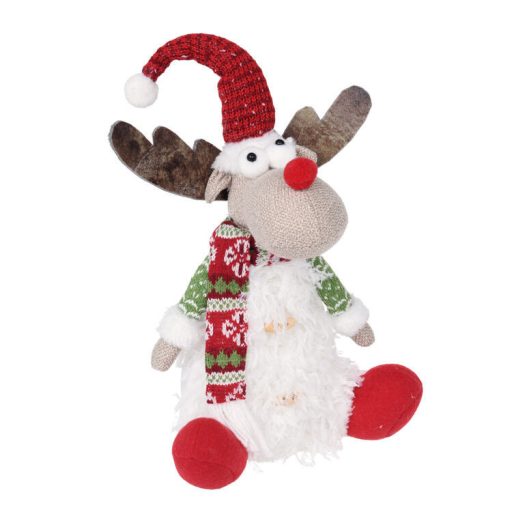 Karácsonyi dekoráció, LED-es (ülő rénszarvas kötött, sapkában)