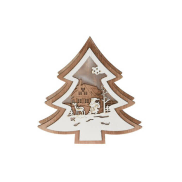 Karácsonyi dekoráció LED világítással natúr-fehér színben (fenyőfa fehér őzikével)