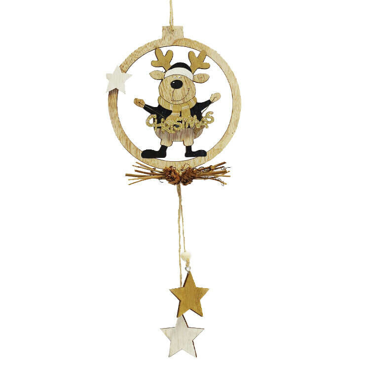 Karácsonyi dekoráció, ajtódísz (karikában fekete rénszarvas)