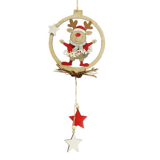 Karácsonyi dekoráció, ajtódísz (karikában piros rénszarvas)