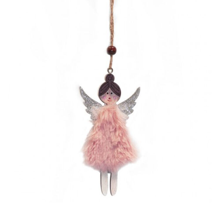 Karácsonyi dekoráció (angyal rózsaszín szőrme ruhában)