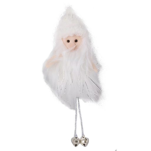 Textilből készült karácsonyi dekoráció-fehér szőrme ruhás manó fehér sapkában. Ideális belső terek karácsonyi díszítéséhez. Termékméret:13x4x4cm Magasság:13cm