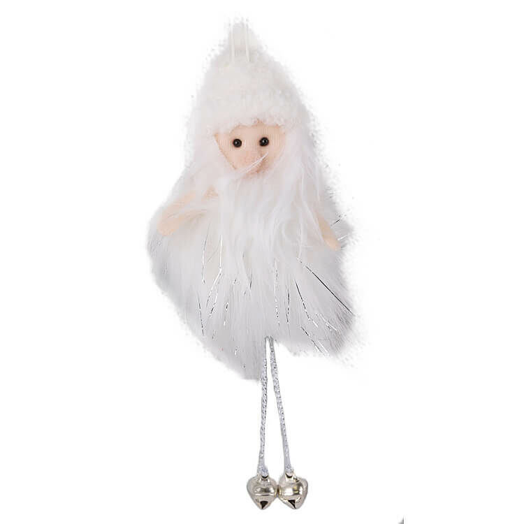 Karácsonyi dekoráció (fehér szőrme ruhás manó fehér sapkában)