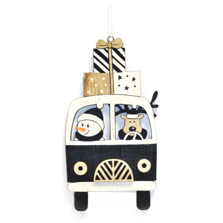 Karácsonyi dekoráció (fekete kisbusz ajándékokkal)