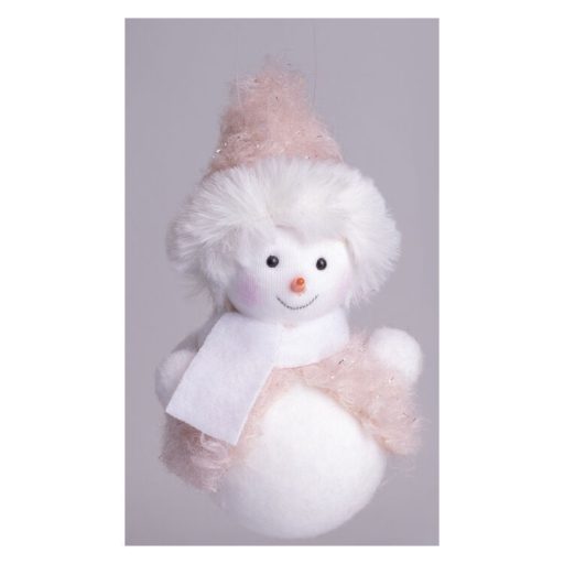 Karácsonyi dekoráció (hóember rózsaszín mellényben, 12 cm)