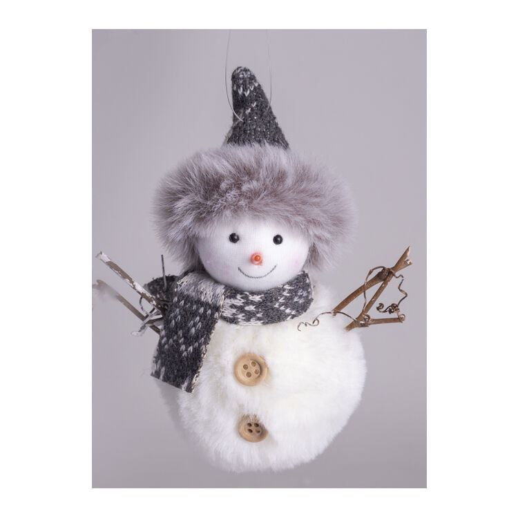 Karácsonyi dekoráció (hóember szürke sállal-sapkával, 12 cm)