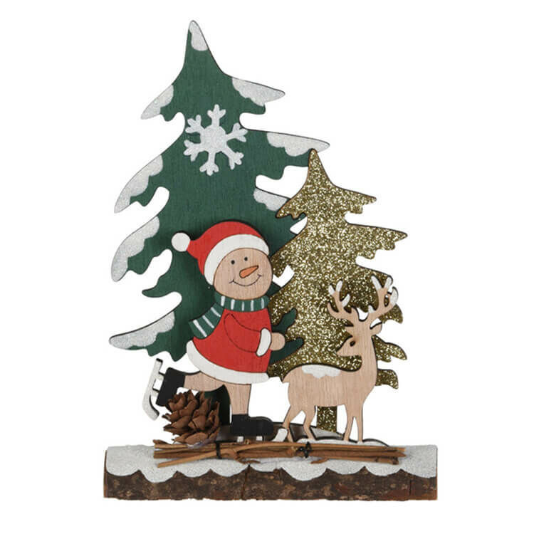 Karácsonyi dekoráció (korcsolyás Hóember és fenyőfák)