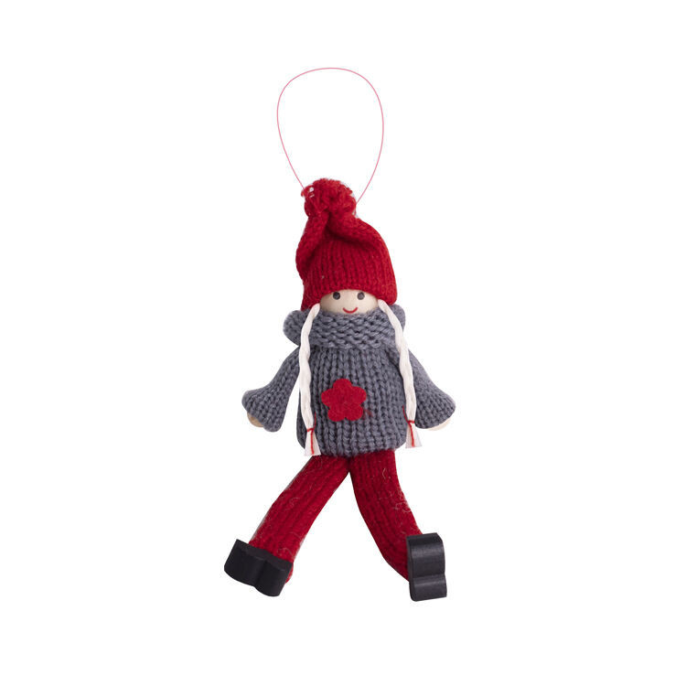 Karácsonyi dekoráció (lány, szürke-piros kötött ruhában)
