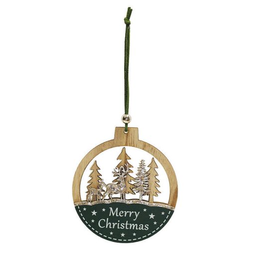 Karácsonyi dekoráció (natúr-zöld karikában ezüst rénszarvas és fenyőfák)
