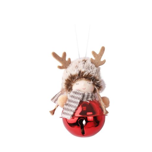 Karácsonyi dekoráció (piros csengő, barna sapkás lánnyal)