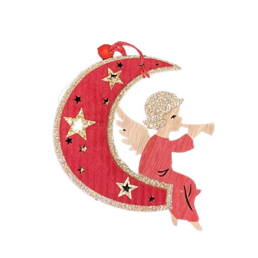 Karácsonyi dekoráció (piros hold, angyal kürttel)