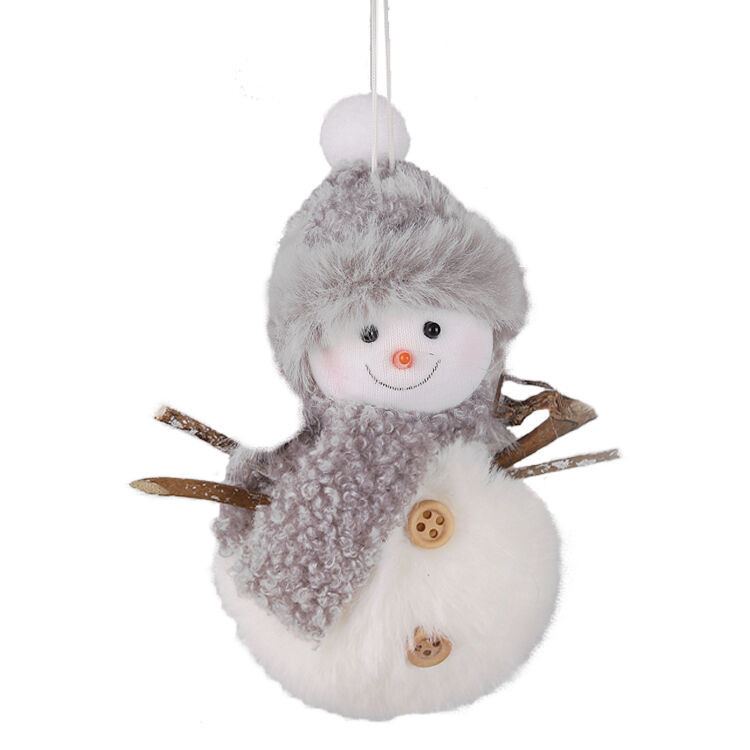 Textilből és plüssből készült karácsonyi dekoráció-plüss hóember szürke sállal és sapkával. Ideális belső terek karácsonyi díszítéséhez.