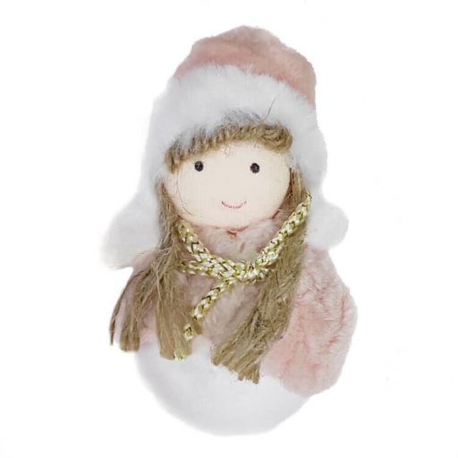 Plüssből és textilből készült karácsonyi dekoráció-lány rózsaszín ruhában. Ideális belső terek karácsonyi díszítéséhez.