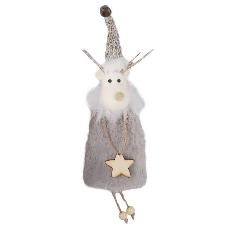 Plüssből és textilből készült karácsonyi dekoráció-plüss rénszarvas natúr csillaggal. Ideális belső terek karácsonyi díszítéséhez.