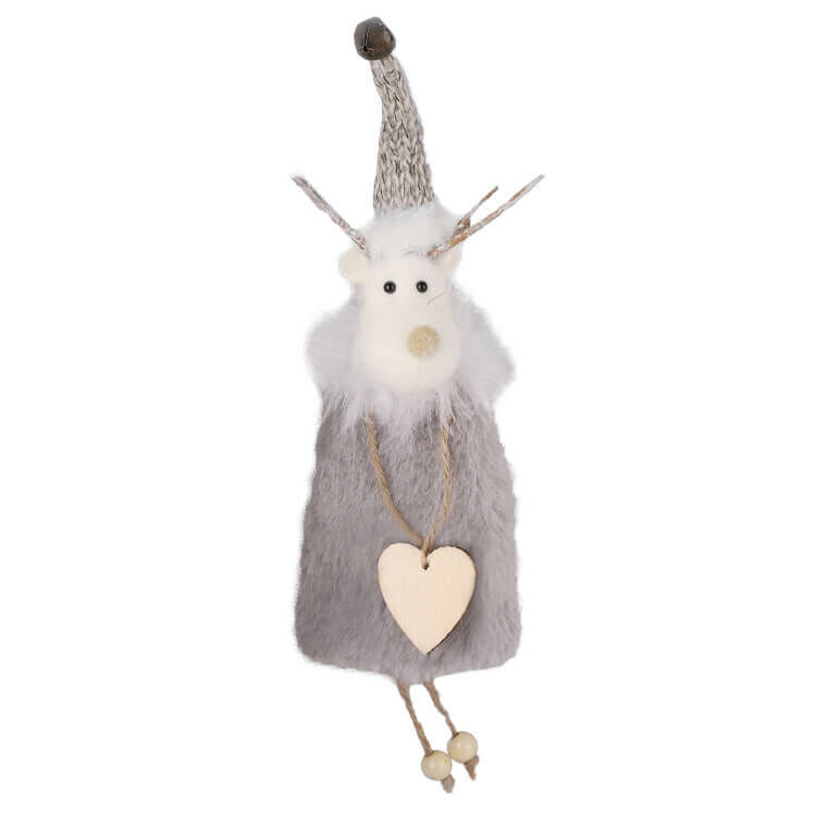 Textilből készült karácsonyi dekoráció-plüss rénszarvas natúr szívvel. Ideális belső terek karácsonyi díszítéséhez. Magasság:25cm
