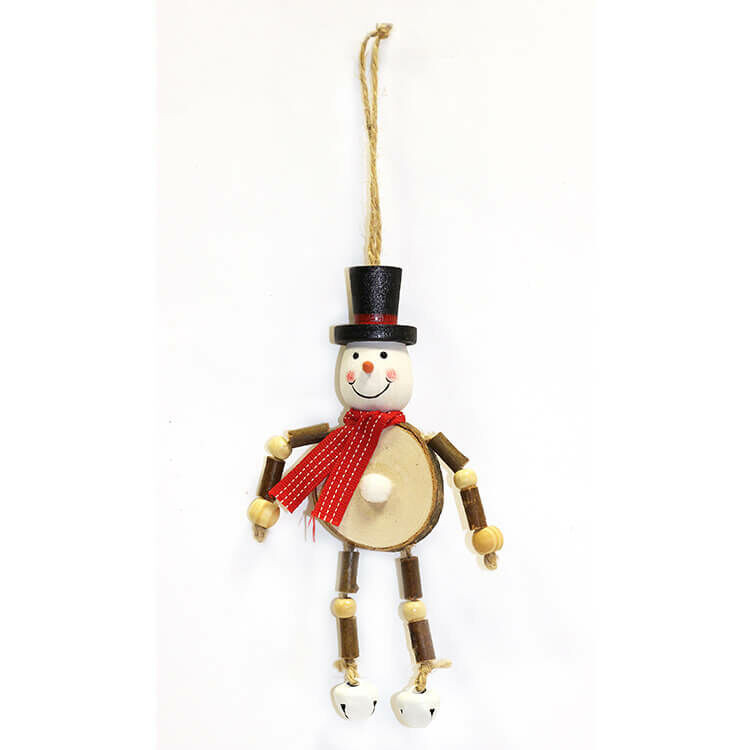 Karácsonyi dekoráció (rönk hóember fehér csengő cipőben)